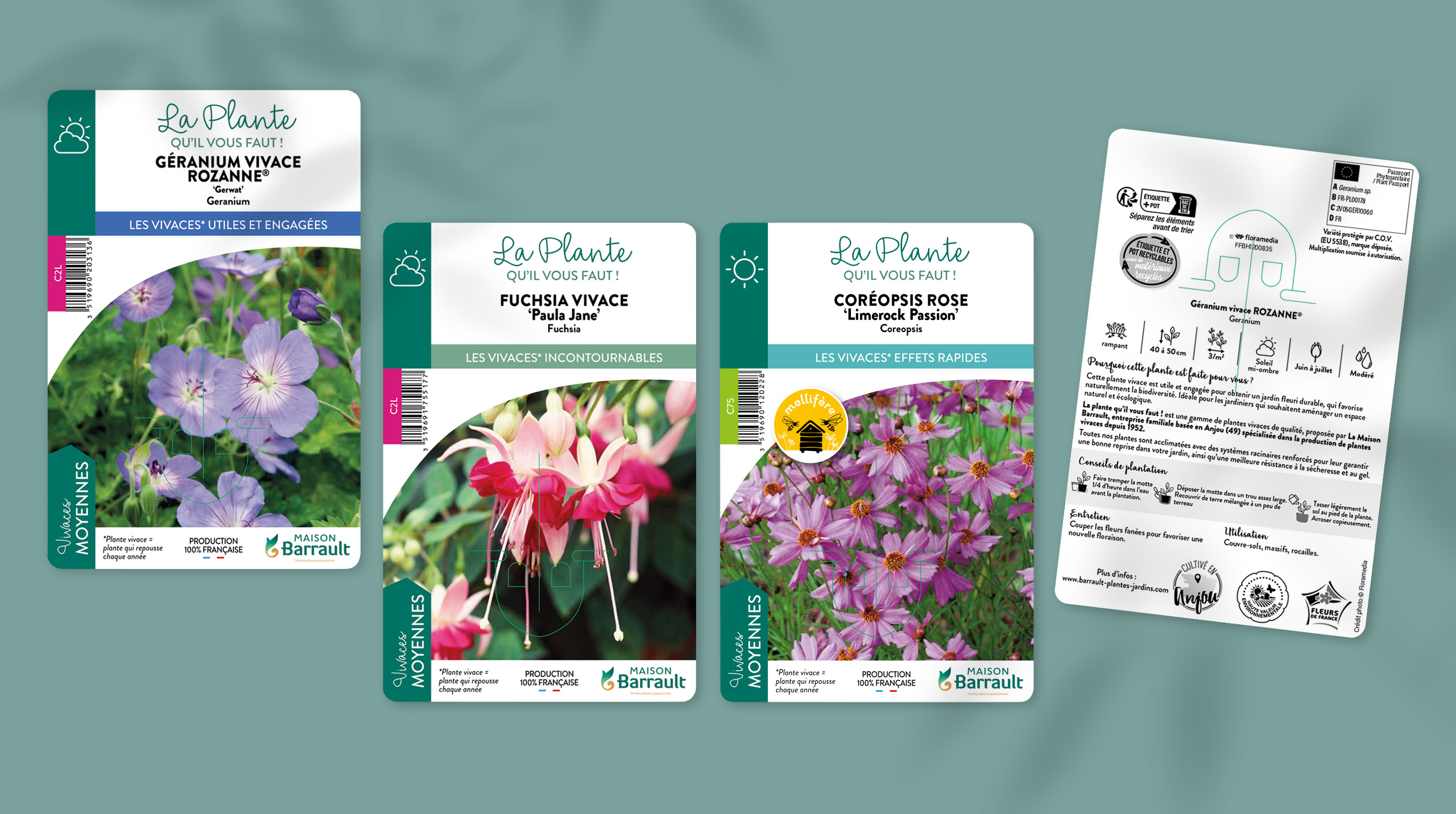 Nous avons accompagné notre client Maison Barrault sur l’évolution de ses chromos personnalisés, pour sa gamme de plantes vivaces :